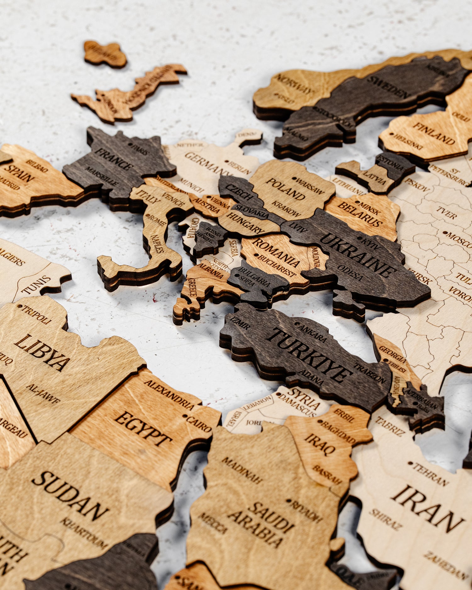 Harita, çevre dostu doğal ahşaptan üretilmiştir; dayanıklı ve kalitelidir